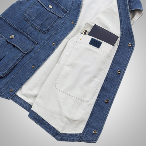 収納力抜群!手ぶらで散策にピッタリの「軽量デニムウォーキングベスト」